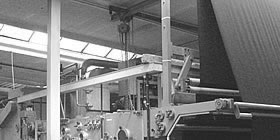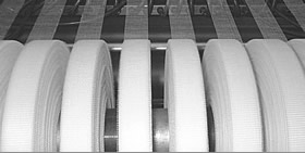 Gewebe von 5-1500g pro m² möglich. Produktion von Großrollen bis zu 1,20m Durchmesser und einer Breite von 3,80m. Kettherstellung im eigenen Haus.